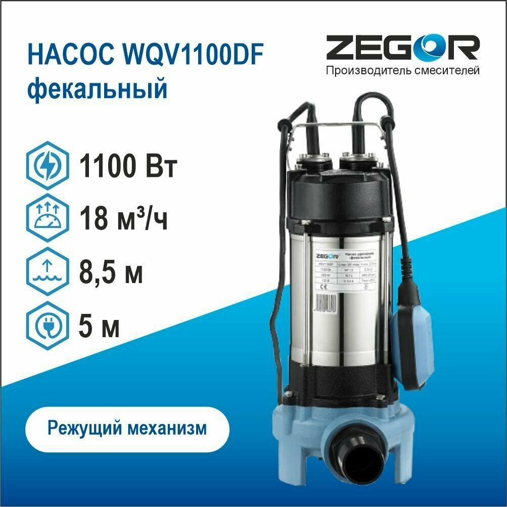 Фекальный насос Zegor WQV1100DF(1100Вт.8.5м) интересное: