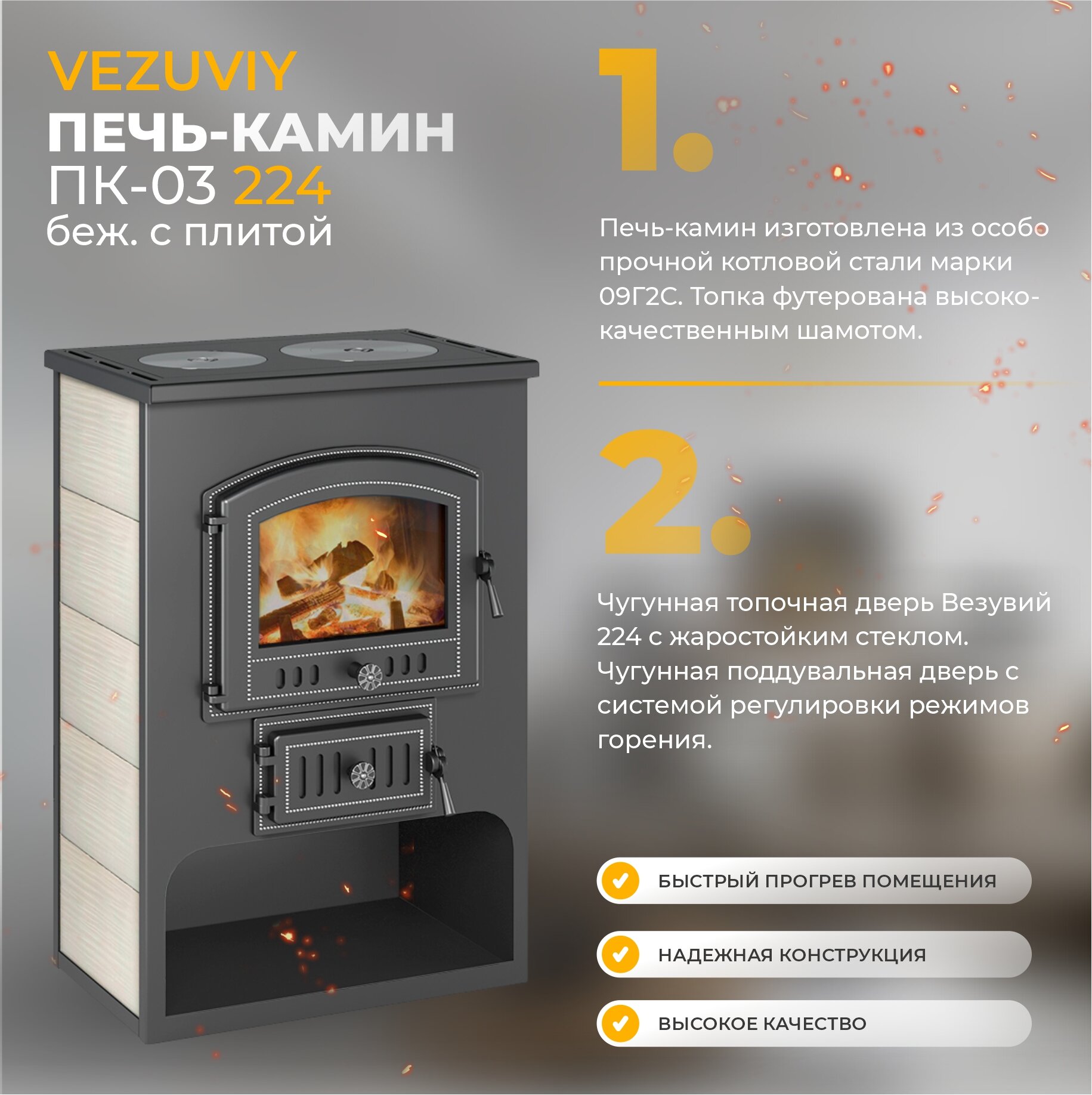 Печь-Камин везувий ПК-03 (224) с плитой "Везувий В3" Бежевая