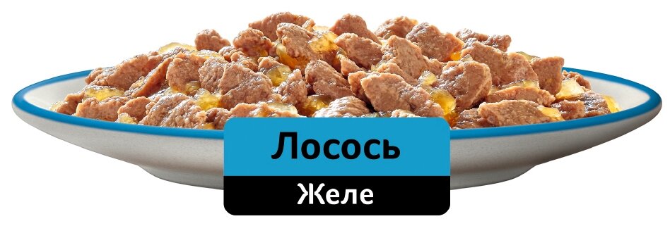 | Состав | мясо и субпродукты, рыба и субпродукты (в том числе лосось), продукты животного происхождения, пшеничная мука, загустители, аминокислоты (в том числе таурин), минеральные вещества, витамины, свекловичный жом, сахара, натуральный краситель. |