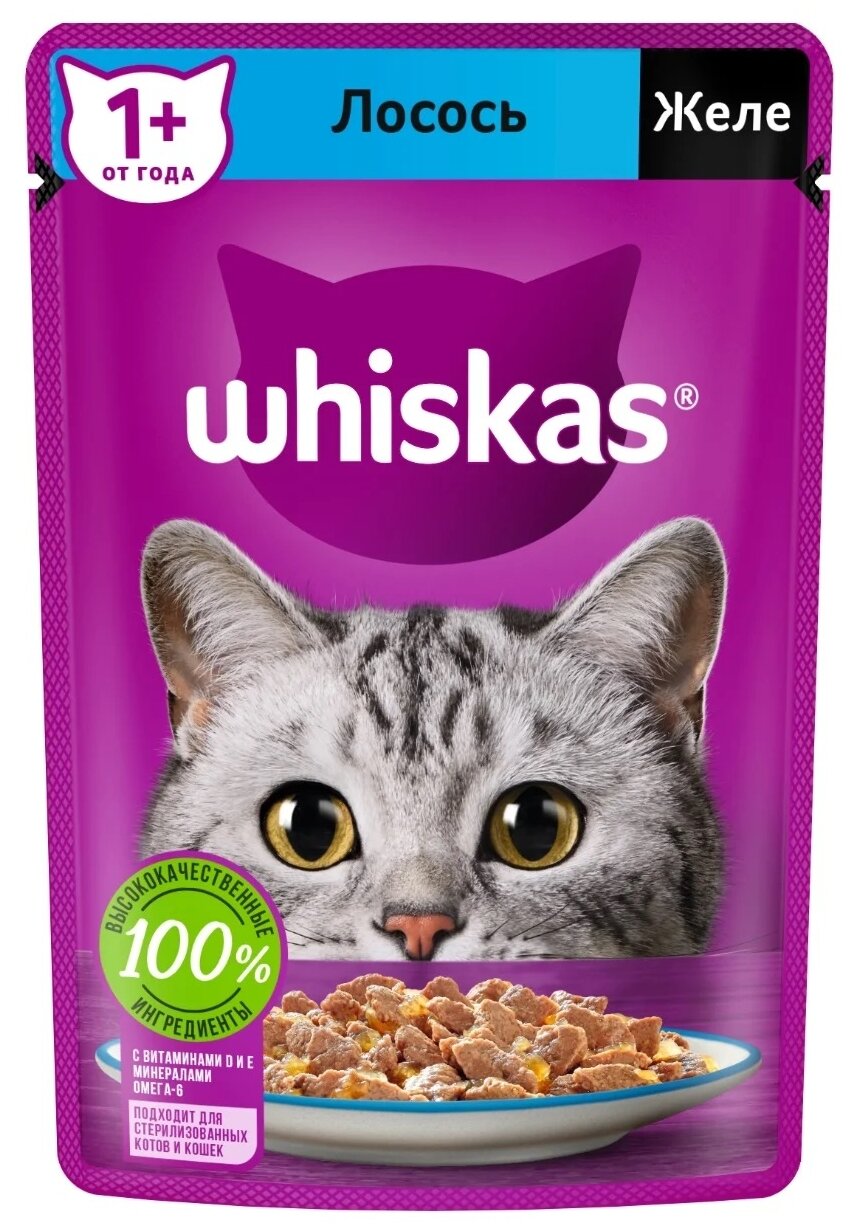 Корм для кошек WHISKAS лосось в желе пауч 75г (упаковка - 28 шт)