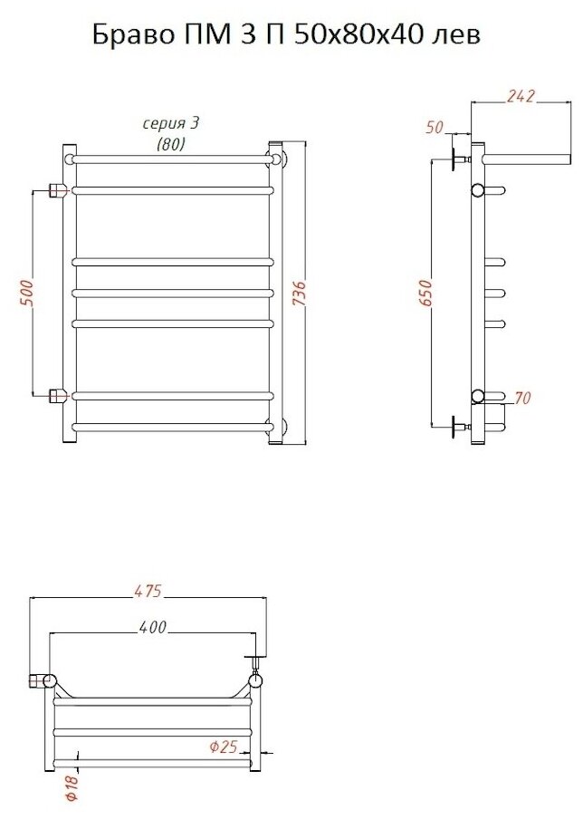 Полотенцесушитель водяной Тругор 475х736мм форма лесенка 6 перекладин левое подключение интересное: