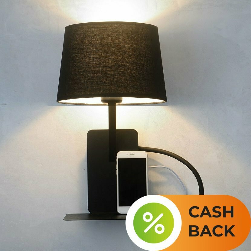 Бра для чтения черное с USB и подсветкой для чтения E27,LED Loft It Phone LOFT9993-BL