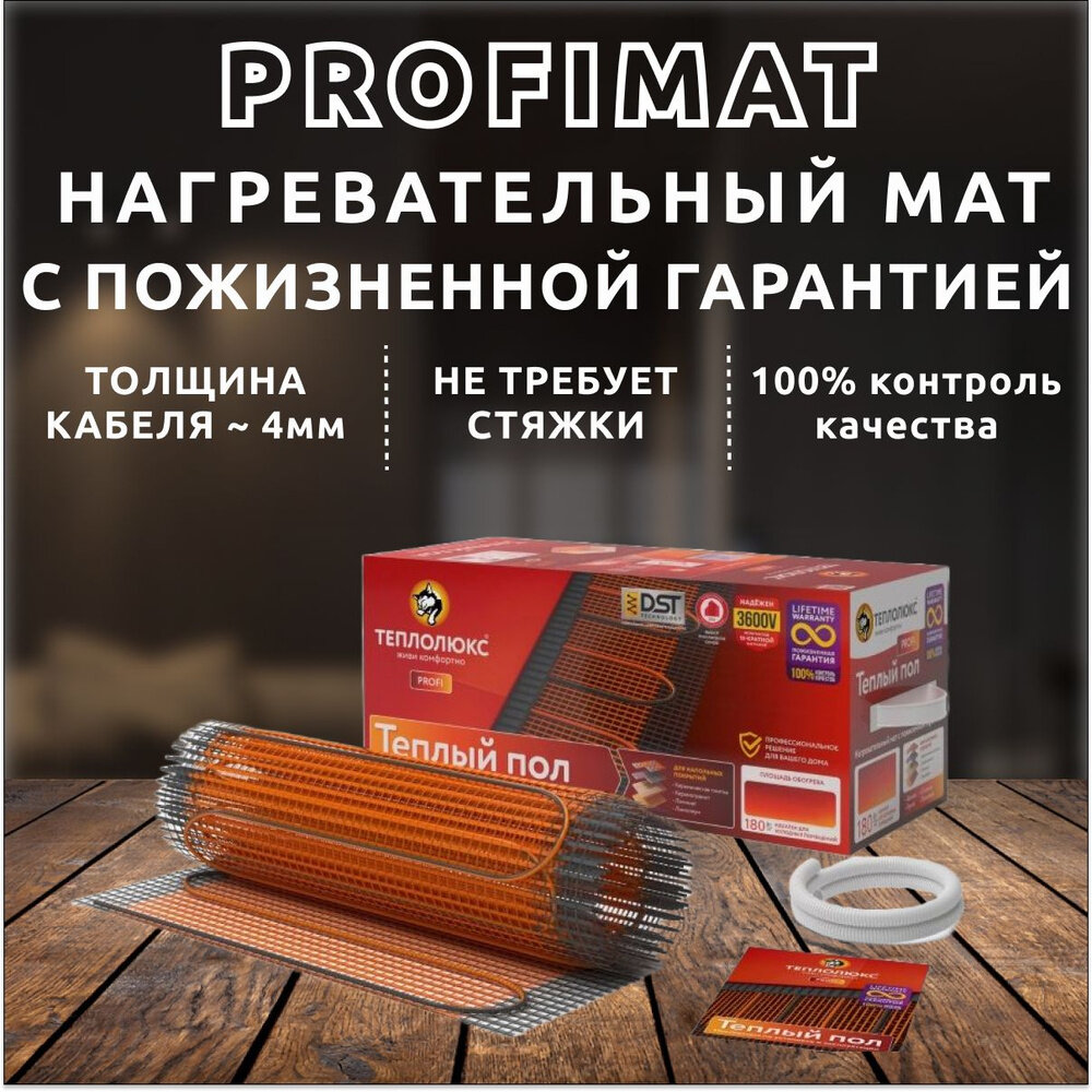 Электрические маты для теплого пола Теплолюкс ProfiMat 180 Вт/1,0м2 (Y11362TAM) - теплый пол дома для обогрева частного дома