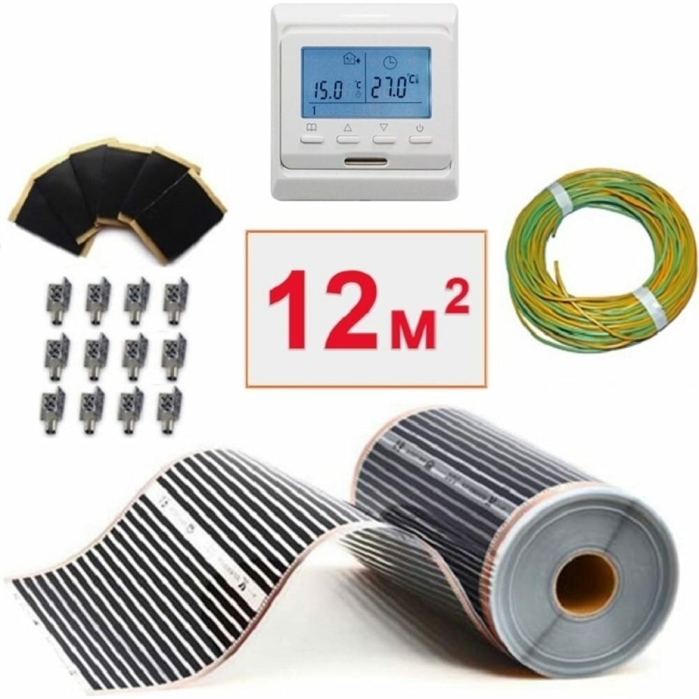 Пленочный электрический теплый пол под ламинат , линолеум , паркет 12м. кв. с умным черным wi-fi терморегулятором. Инфракрасная пленка 12 м2