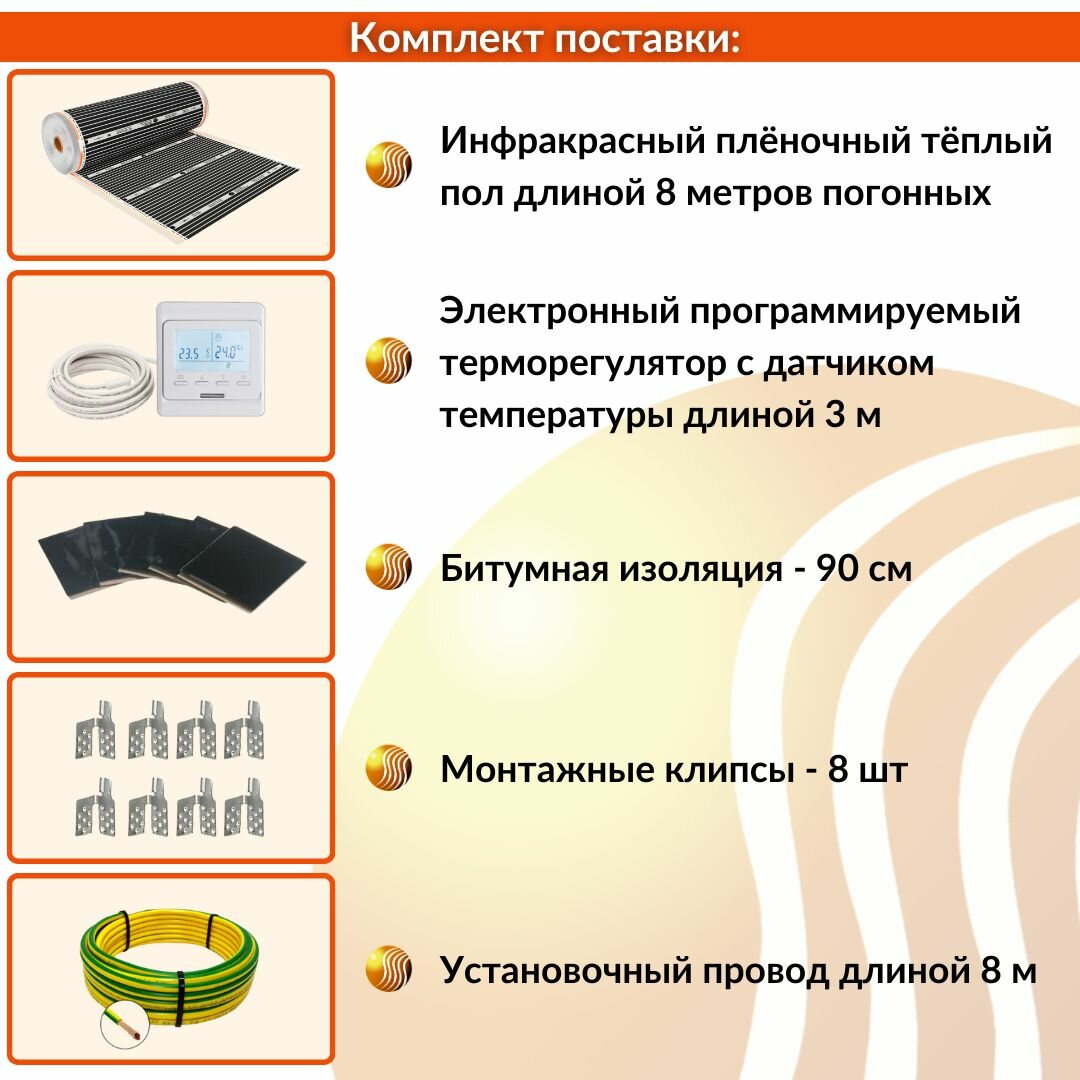 Инфракрасный пленочный теплый пол Теплософт 8 м², 1760 Вт с электронным терморегулятором