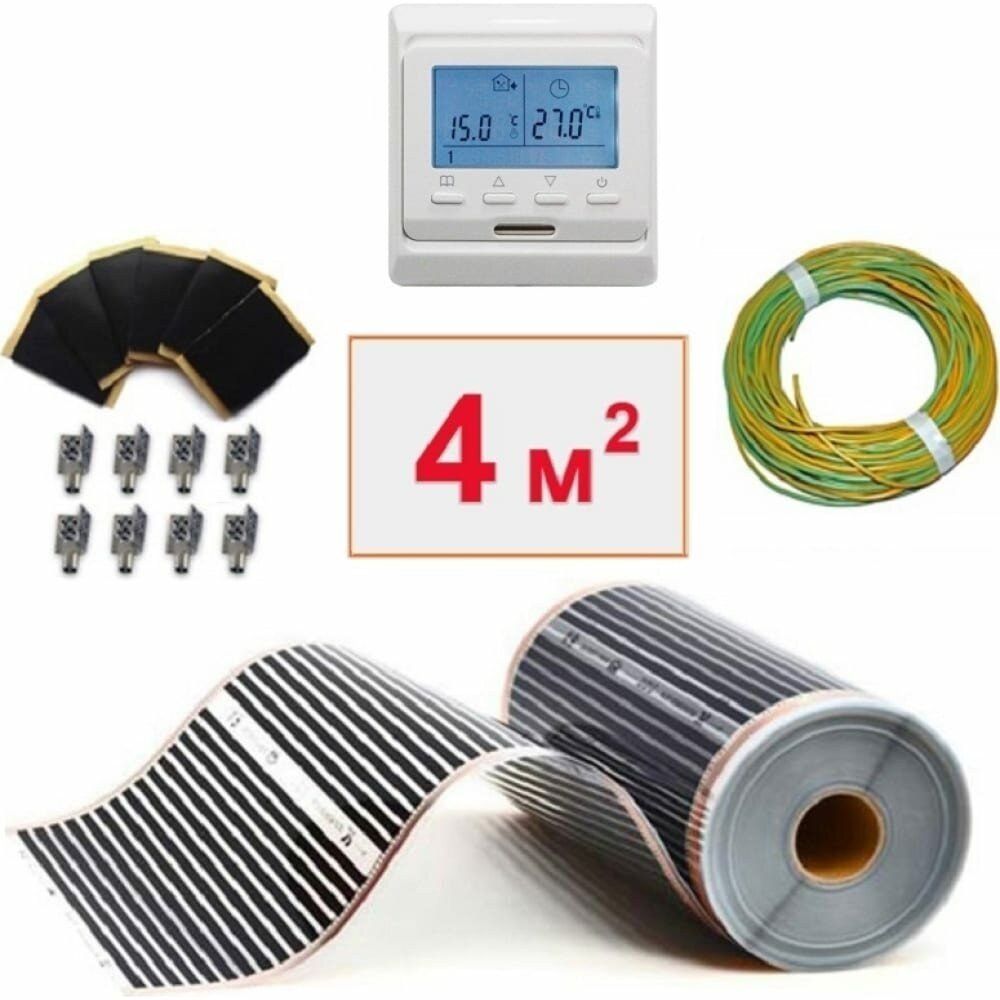 Пленочный электрический теплый пол под ламинат , линолеум , паркет 4м. кв. с wi-fi терморегулятором. Инфракрасная пленка 4 м2