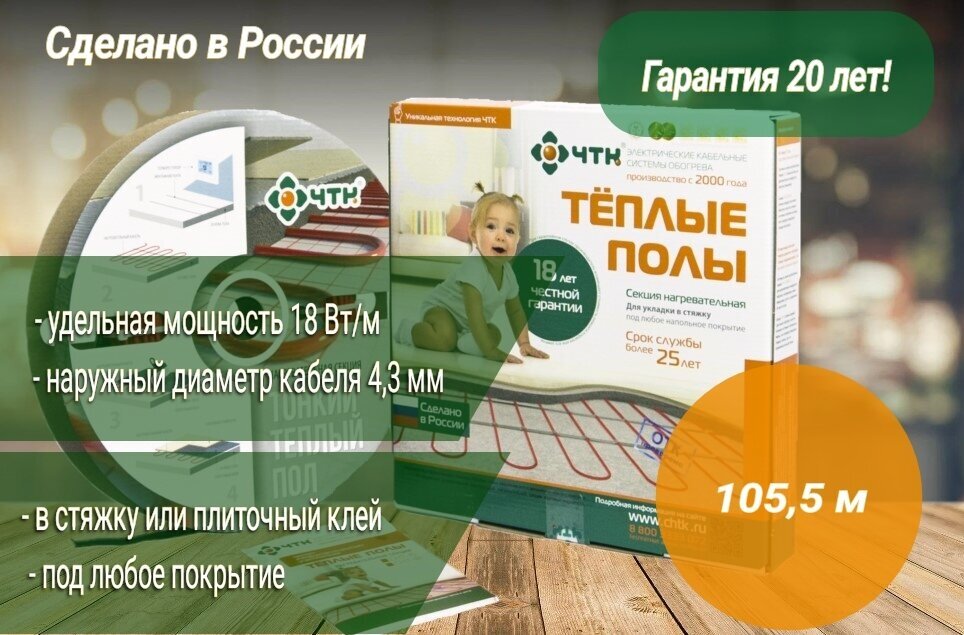 СохранитьКабельный теплый пол ЧТК СНТ-18-1899 (105,5 метра) интересное: