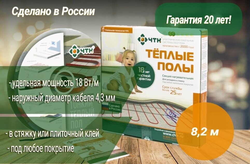 Кабельный теплый пол ЧТК СНТ-18-148 (8,2 метра)