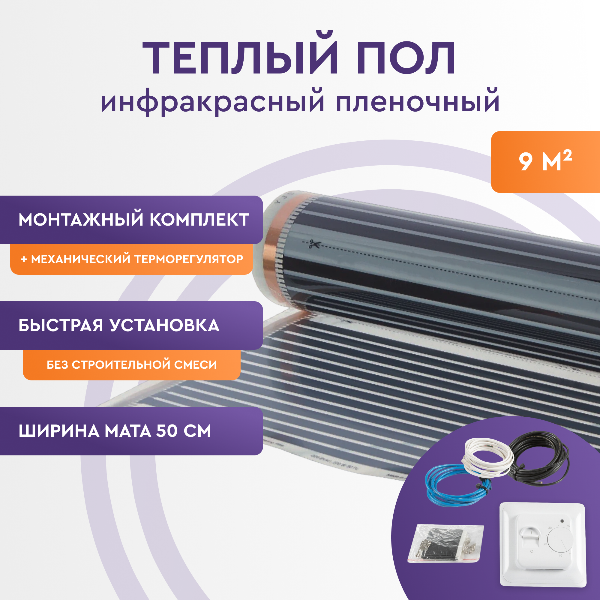Купить Инфракрасный пленочный теплый пол Обогрев Люкс 50PL 9 м2 + механический терморегулятор
