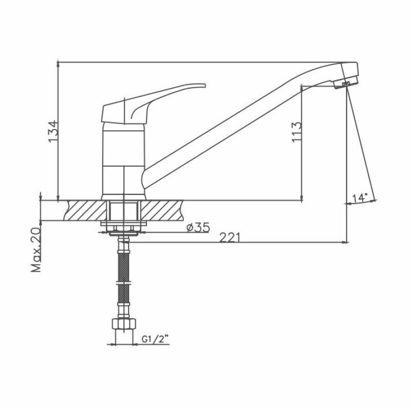 Смеситель для кухни 35к CN4913 CRON длинный пов. излив 221 мм, п/гайку, хром