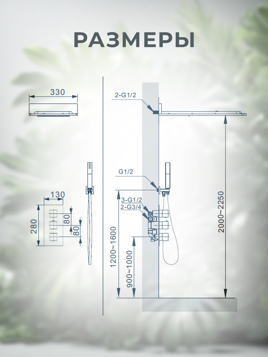| Форма верхнего душа | квадратная |