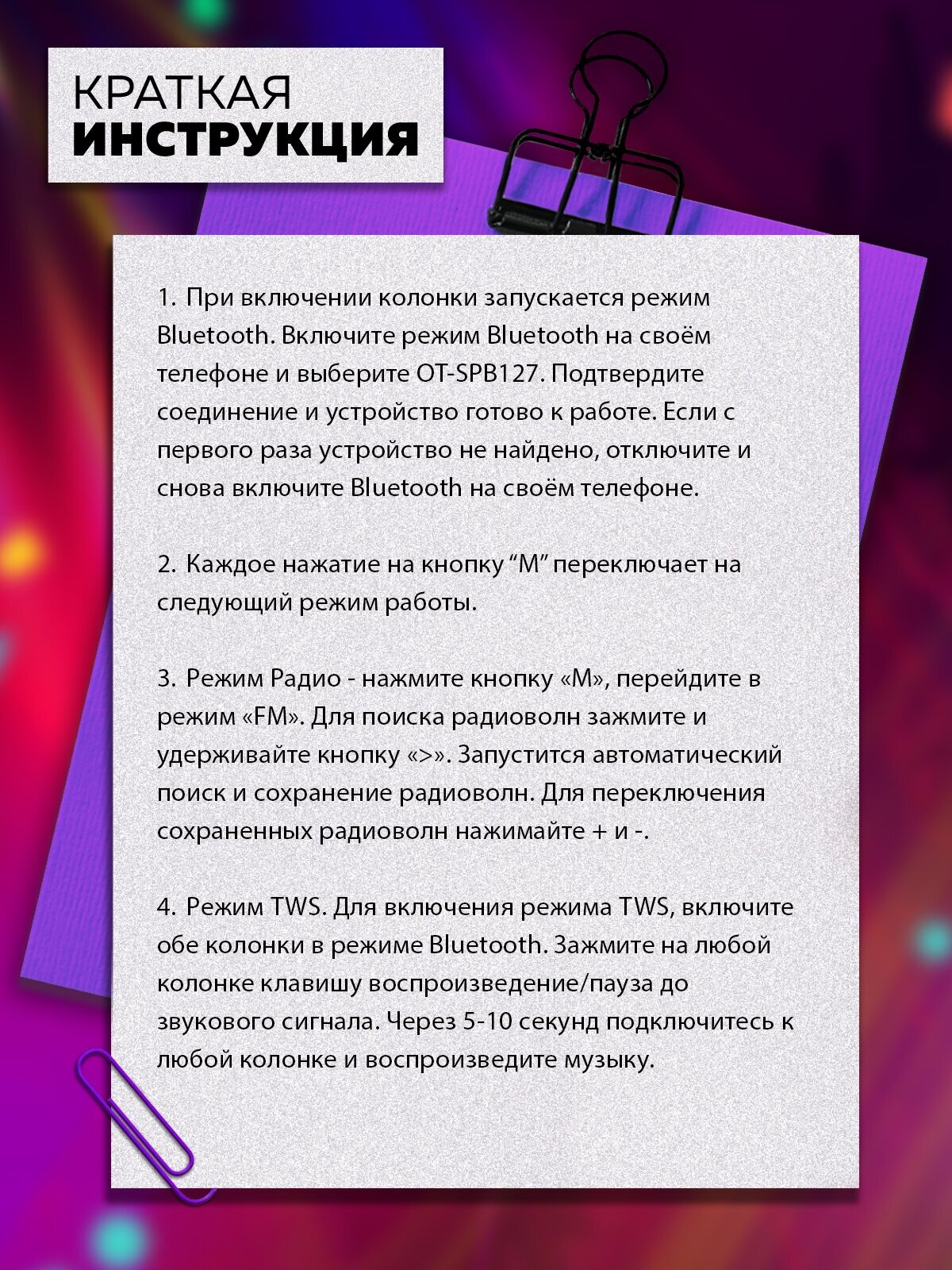 СохранитьКолонка Bluetooth, FM радио, USB плеер, защита от воды, ткань OT-SPB127серая Орбита интересное:
