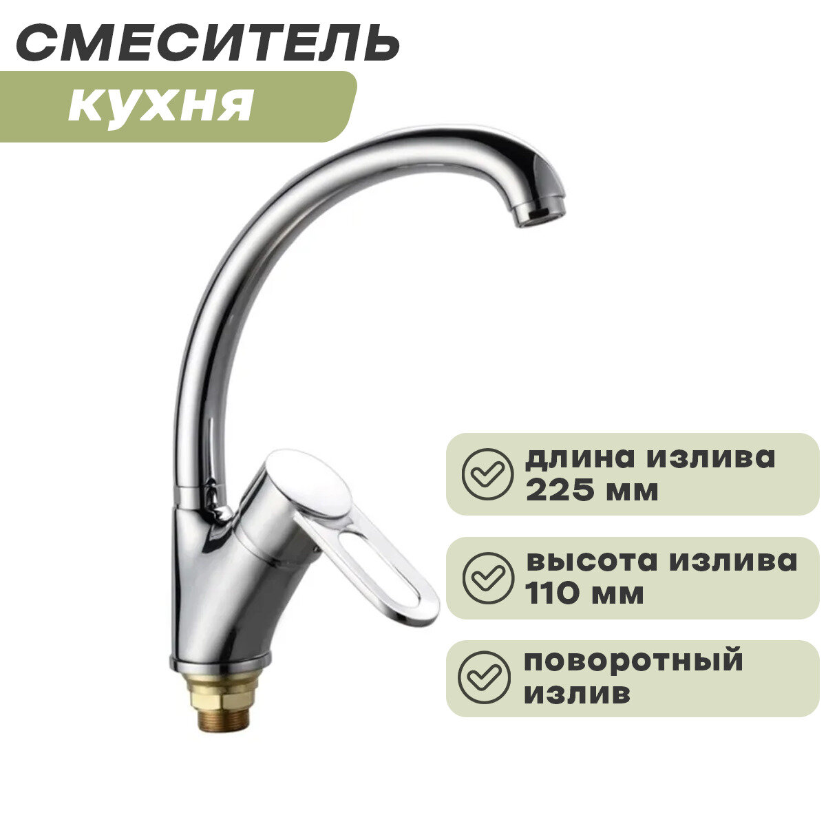Смеситель для кухни 40к ПСМ-335-008 плюс тип см-моцба, выс. пов. излив, п/гайку, без подводки, хром