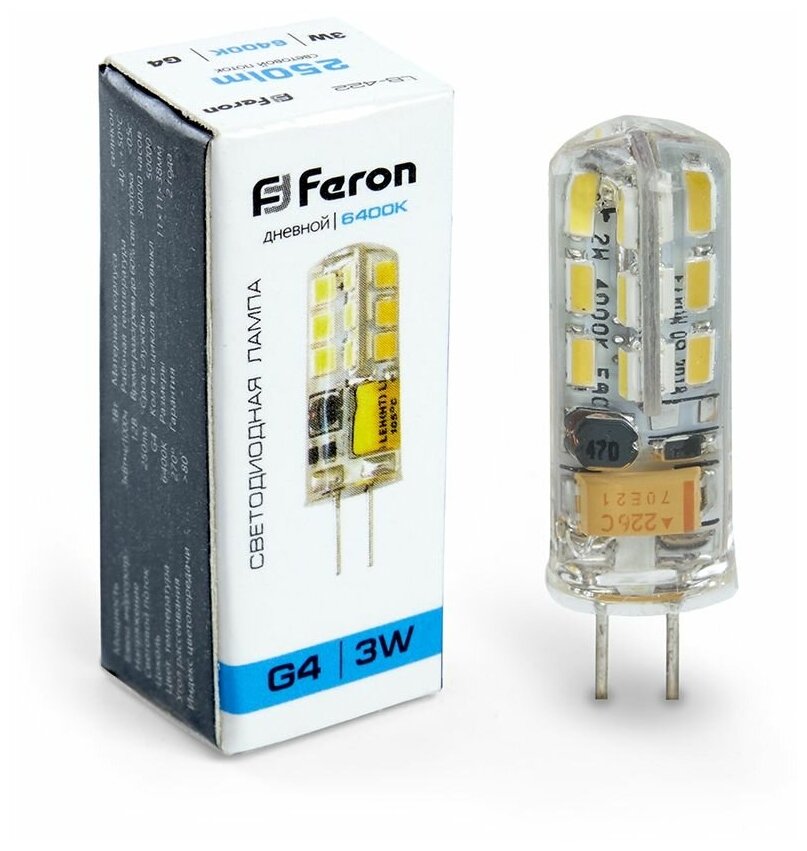 Лампа светодиодная 3W G4 12V 6400K LB-422 (Feron) интересное: