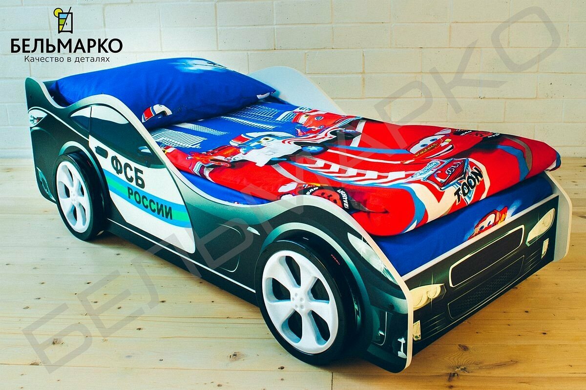 Детская кровать машина Бельмарко ФСБ с ортопедическим основанием и бортиком