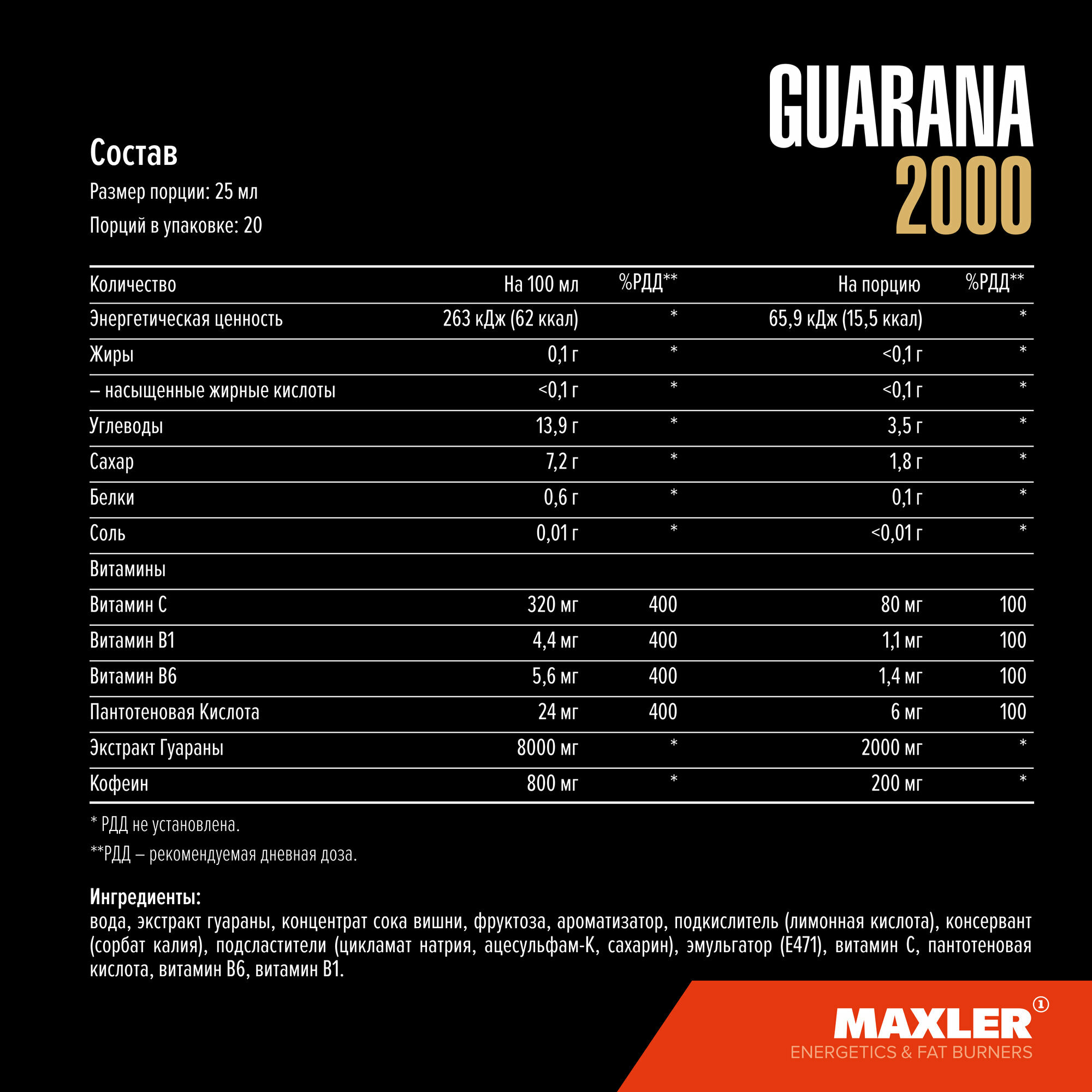 Энергетик Maxler Guarana 2000 ( Гуарана 2000 ), 14 ампул по 25 мл. - Вишня