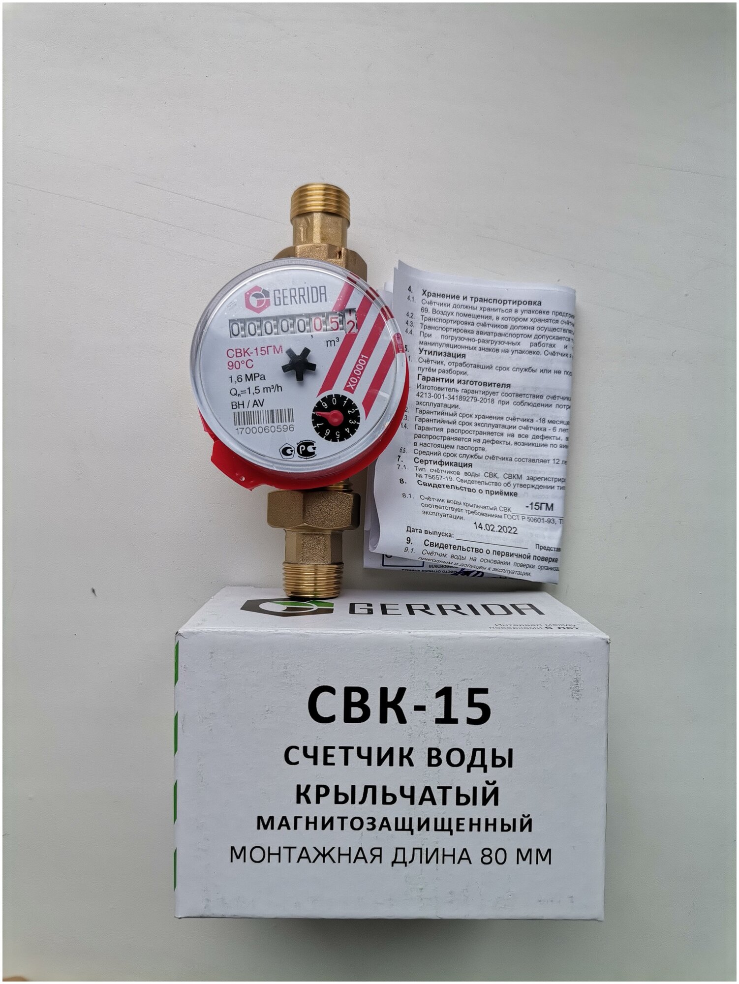 Счётчик воды универсальный геррида 1/2" СВК-15ГМ-80 мм с набором монтажных частей - 1 шт. интересное: