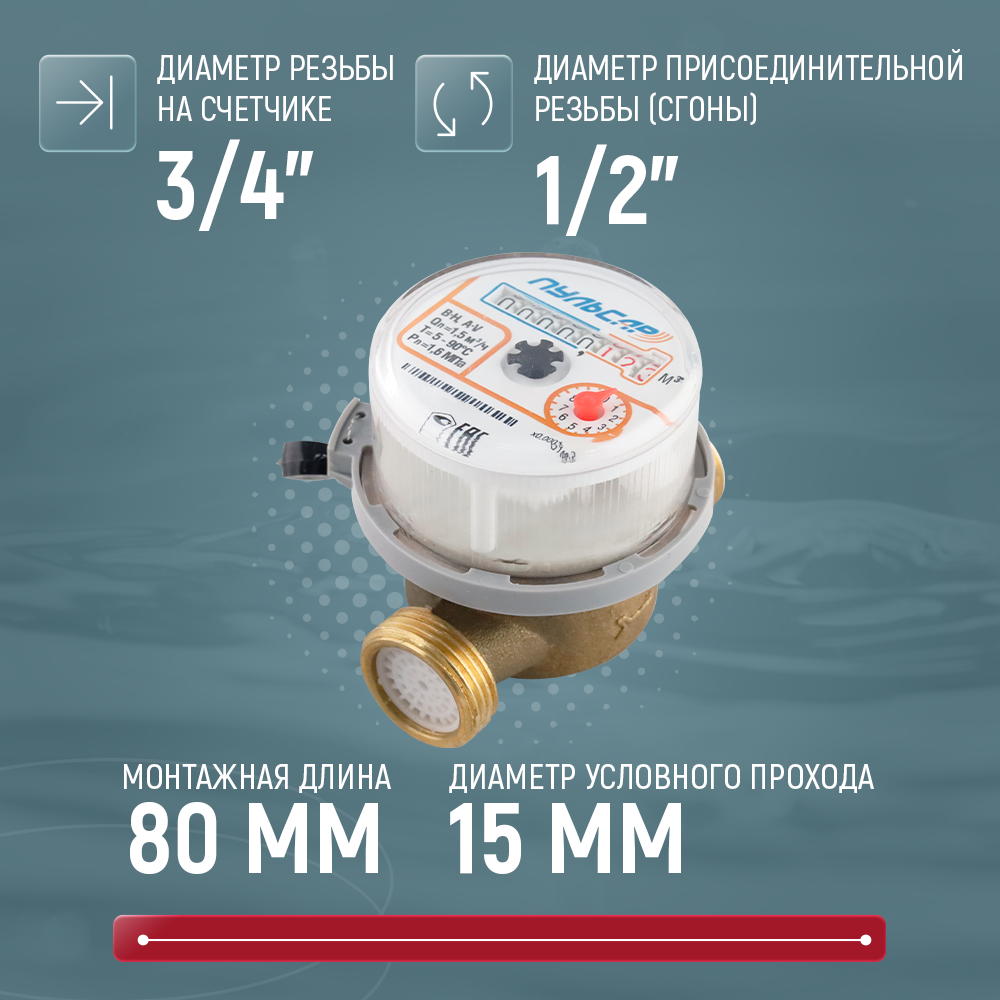Счетчик для воды пульсар универсальный Ду 15 L80 без КМЧ (межповерочный интервал 6 лет)