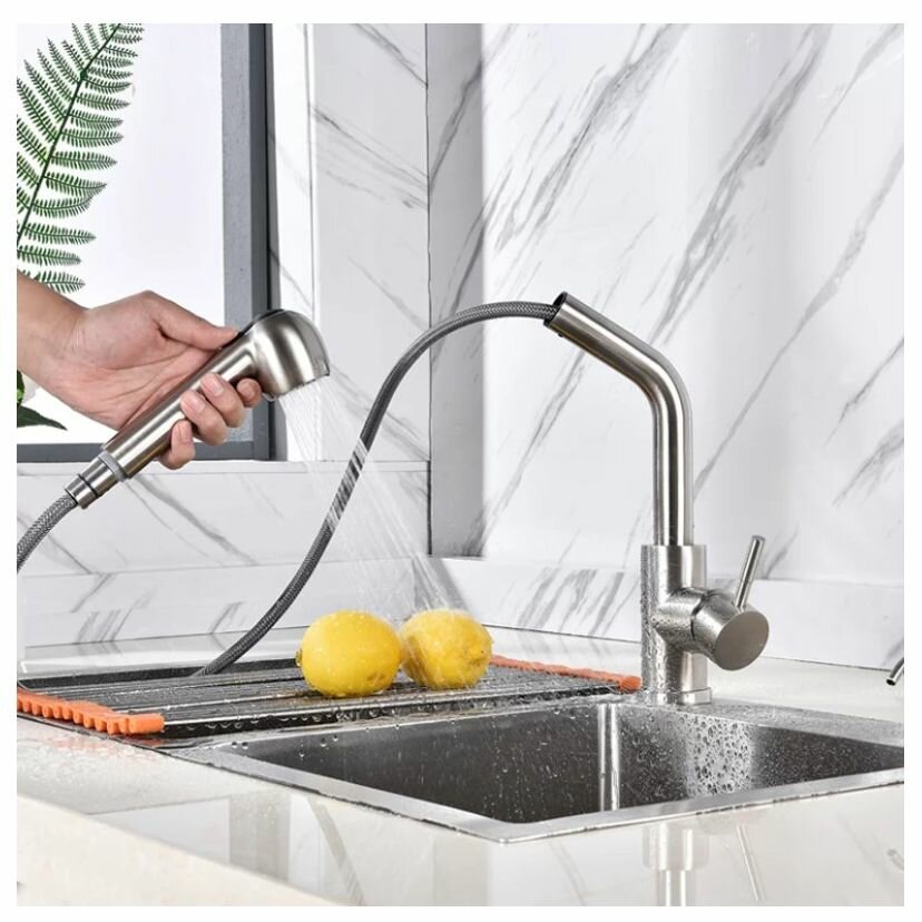 Смеситель для кухни Fashun A56009 с выдвижным изливом, сатин