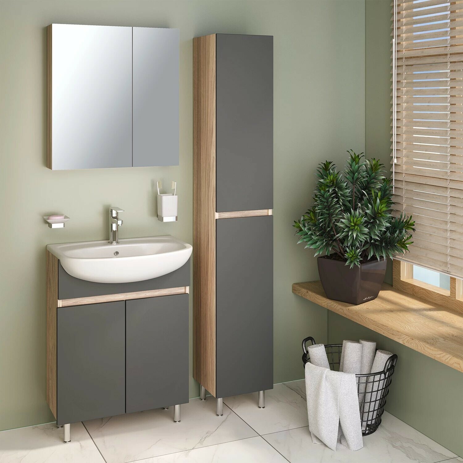 Тумба напольная RUNO Лада 60 графит с умывальником Уют 60