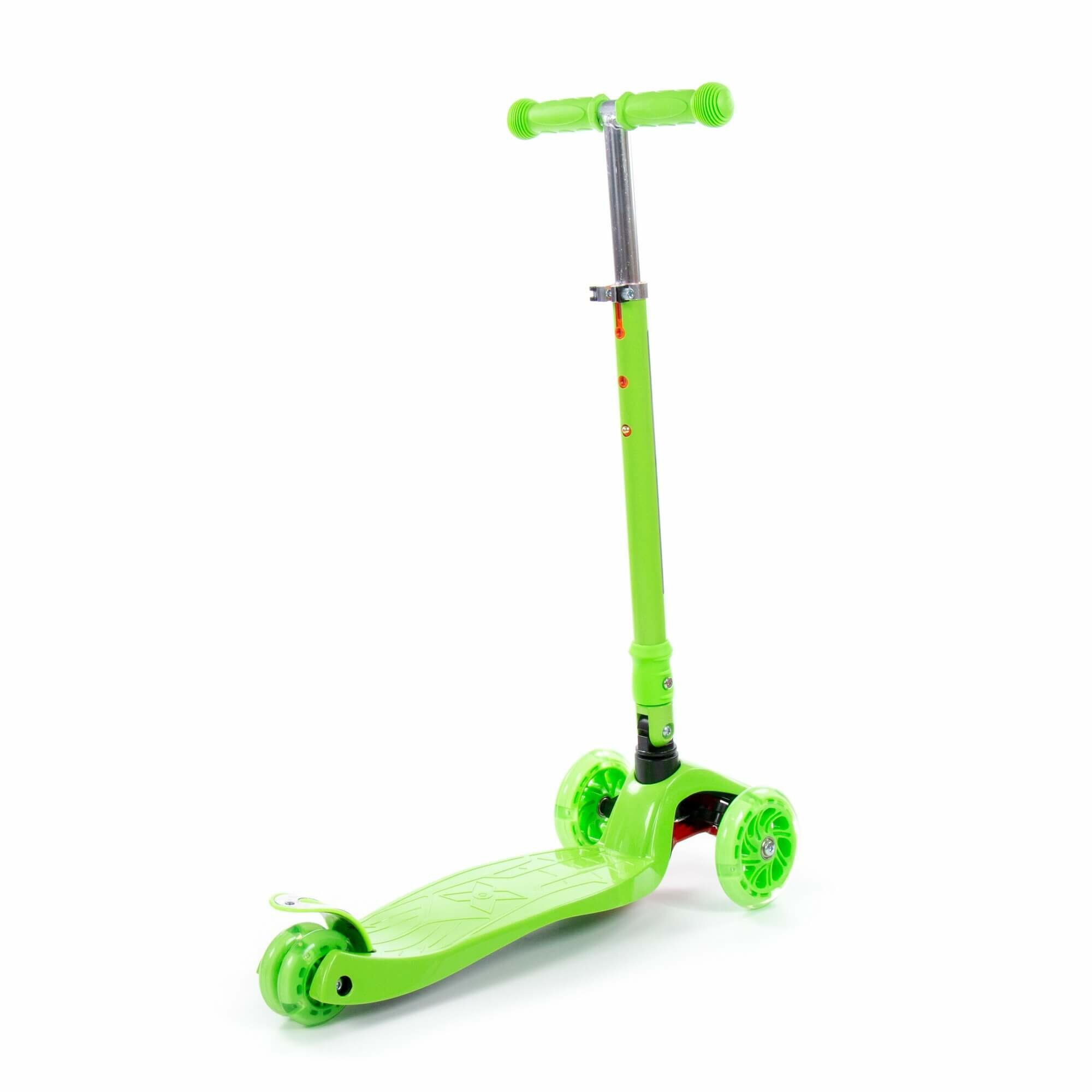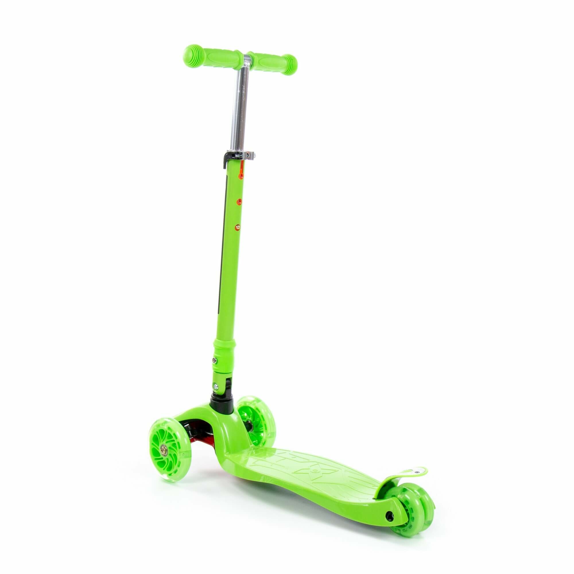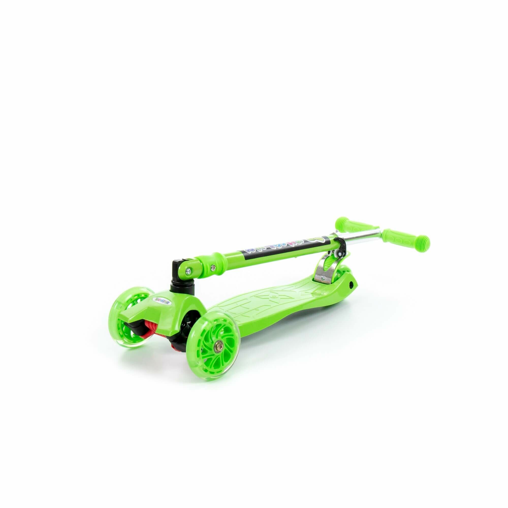 Самокат детский, складной, 3-х колесный, зеленый, светящиеся колеса, размер самоката - 57 х 25,7 х 75 см.
