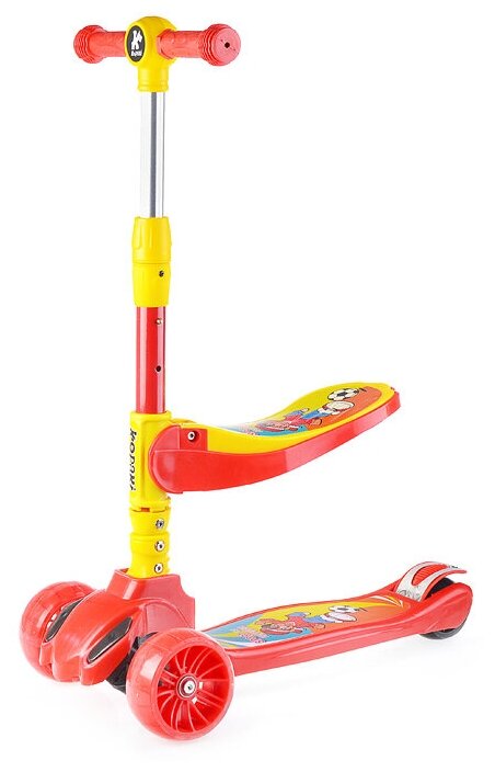 Купить Самокат трансформер детский трехколесный, светящиеся колеса, дека с подсветкой и мелодией, съемное сиденье 128-4 красный, в коробке