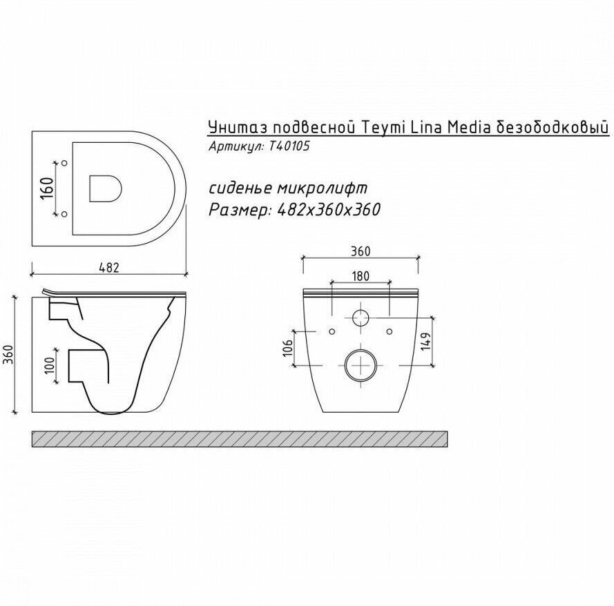 Унитаз подвесной Bau Teymi Lina Media безободковый, сиденье микролифт интересное: