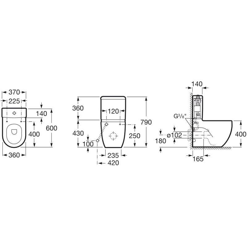 Roca MERIDIAN-N Унитаз компакт с универсальным выпуском (370х600х790) белый 342248000+341242000