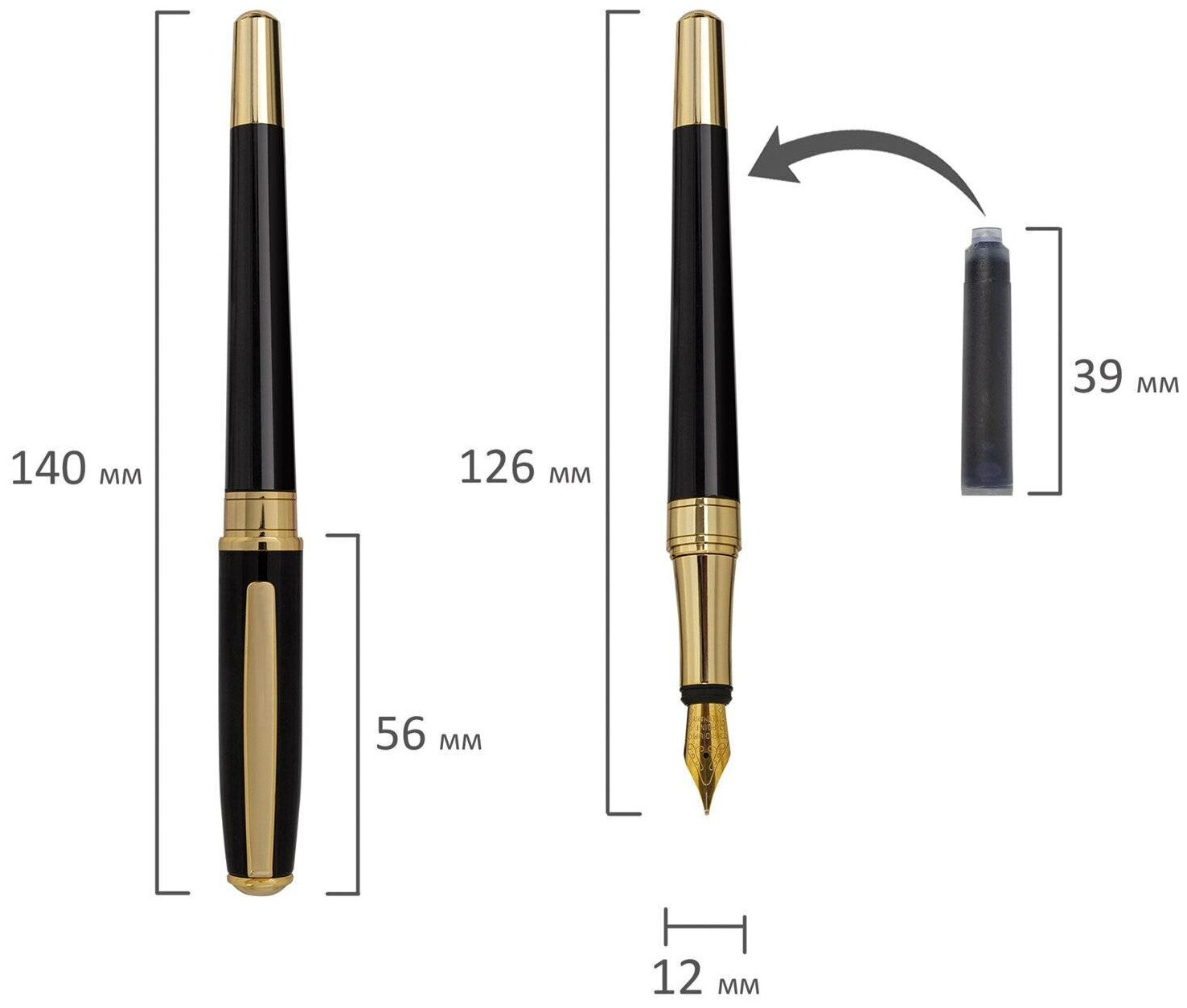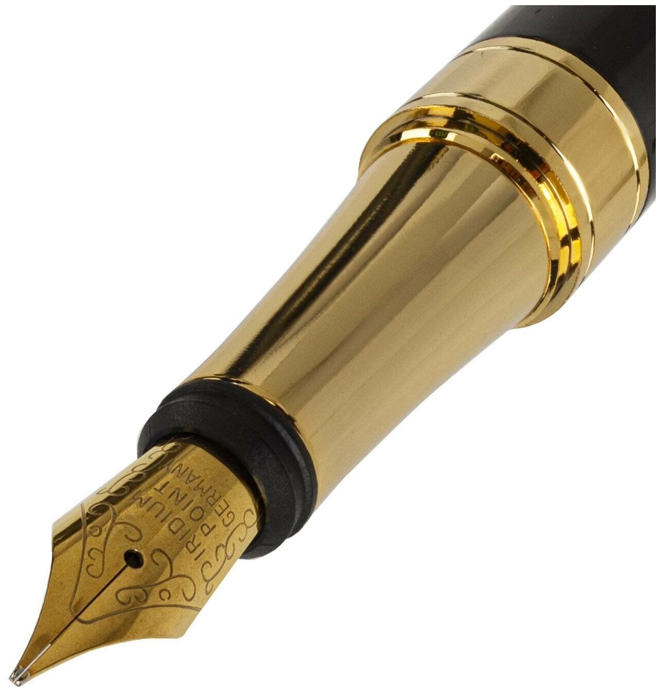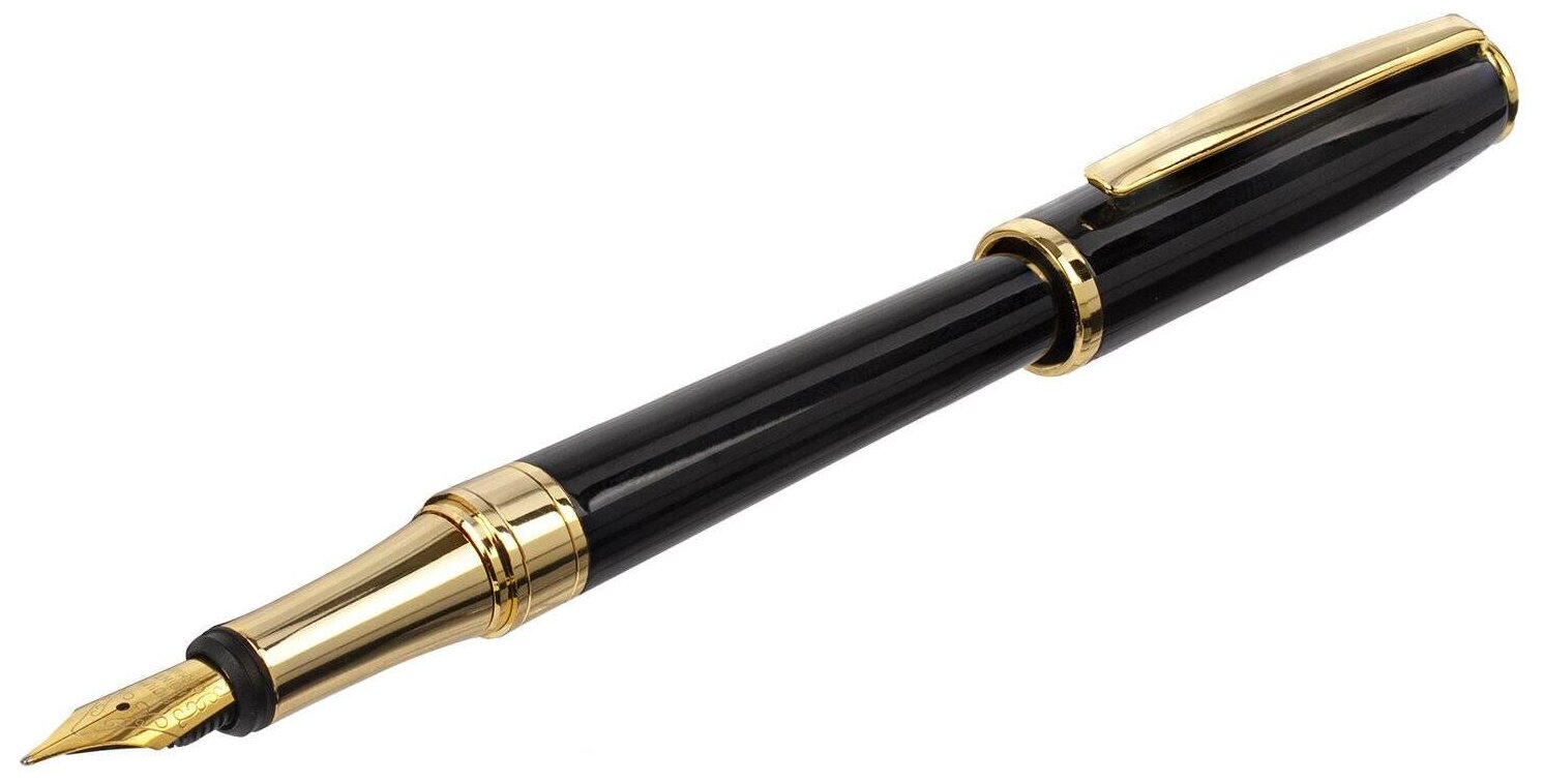 Ручка подарочная перьевая GALANT "LUDUS", корпус черный, детали золотистые, узел 0,8 мм, 143529, 1 шт
