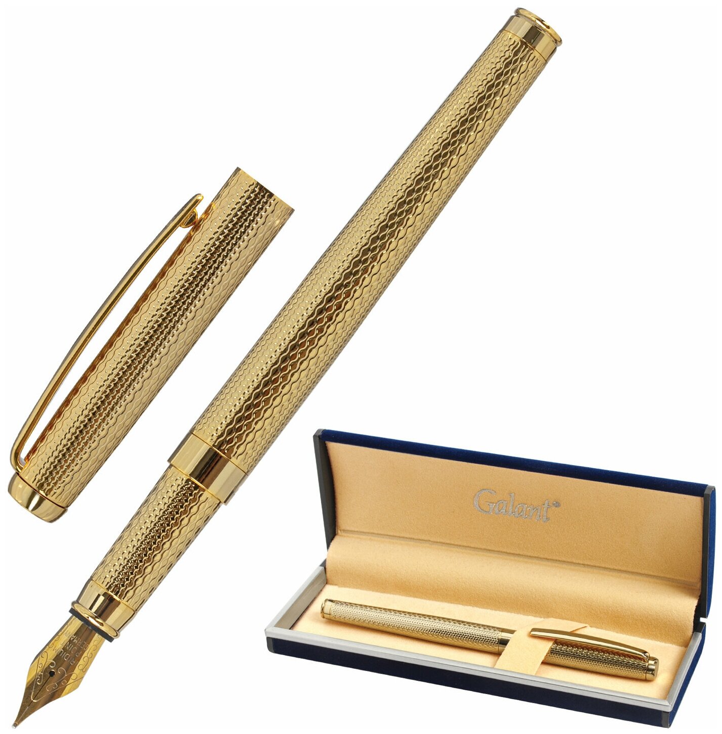 Ручка подарочная перьевая GALANT "VERSUS", корпус золотистый, детали золотистые, узел 0,8 мм, синяя, 143528, 1 шт