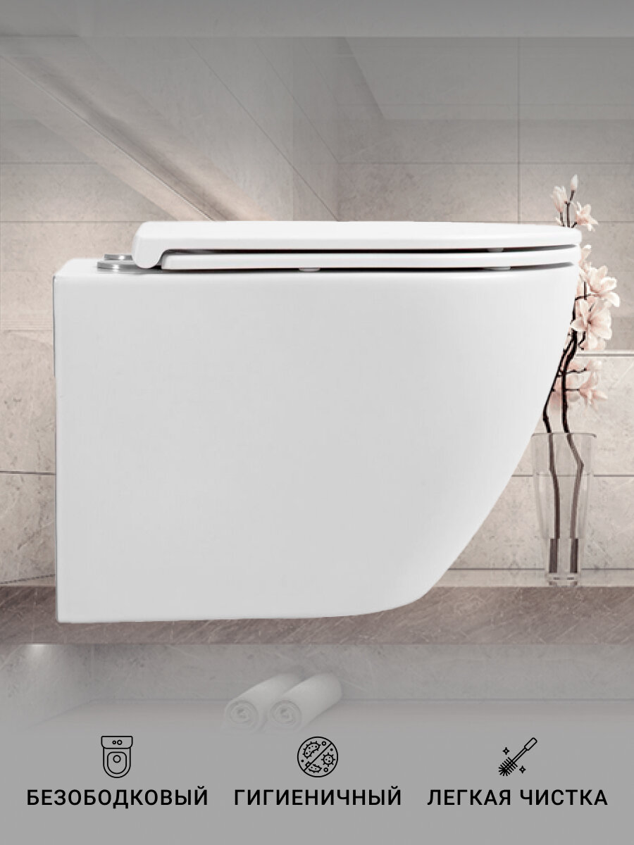 СохранитьУнитаз подвесной безободковый SinteSi EVI с крышкой-сиденьем дюрапласт, микролифт интересное: