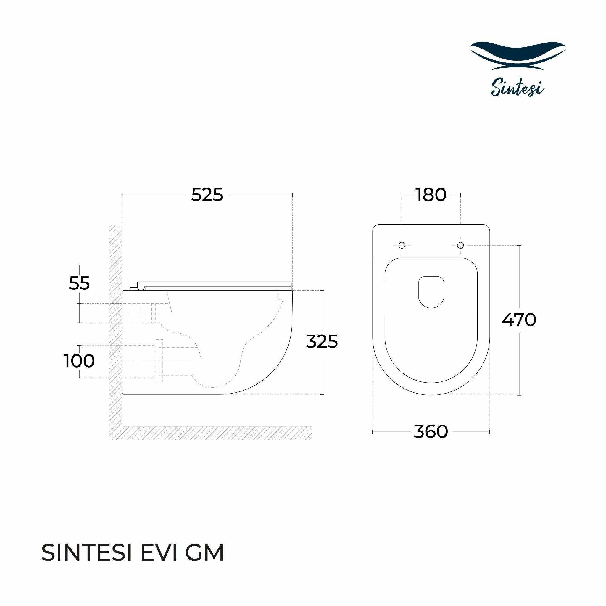 Унитаз Sintesi Evi SIN-TS-EVI-151GM подвесной Серый матовый с сиденьем Микролифт