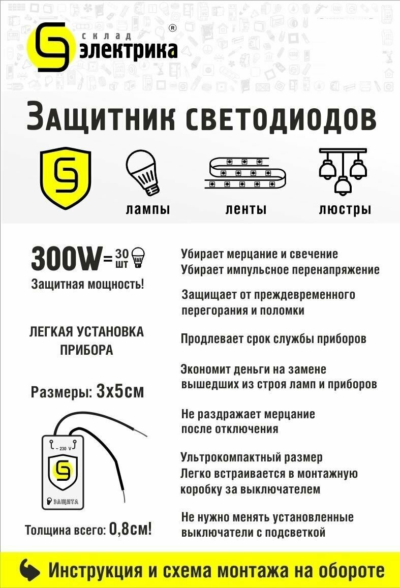 Устройство защиты светодиодных ламп и светодиодов 300 Вт УЗС LED Модифицированный (комплект из 4шт) интересное: