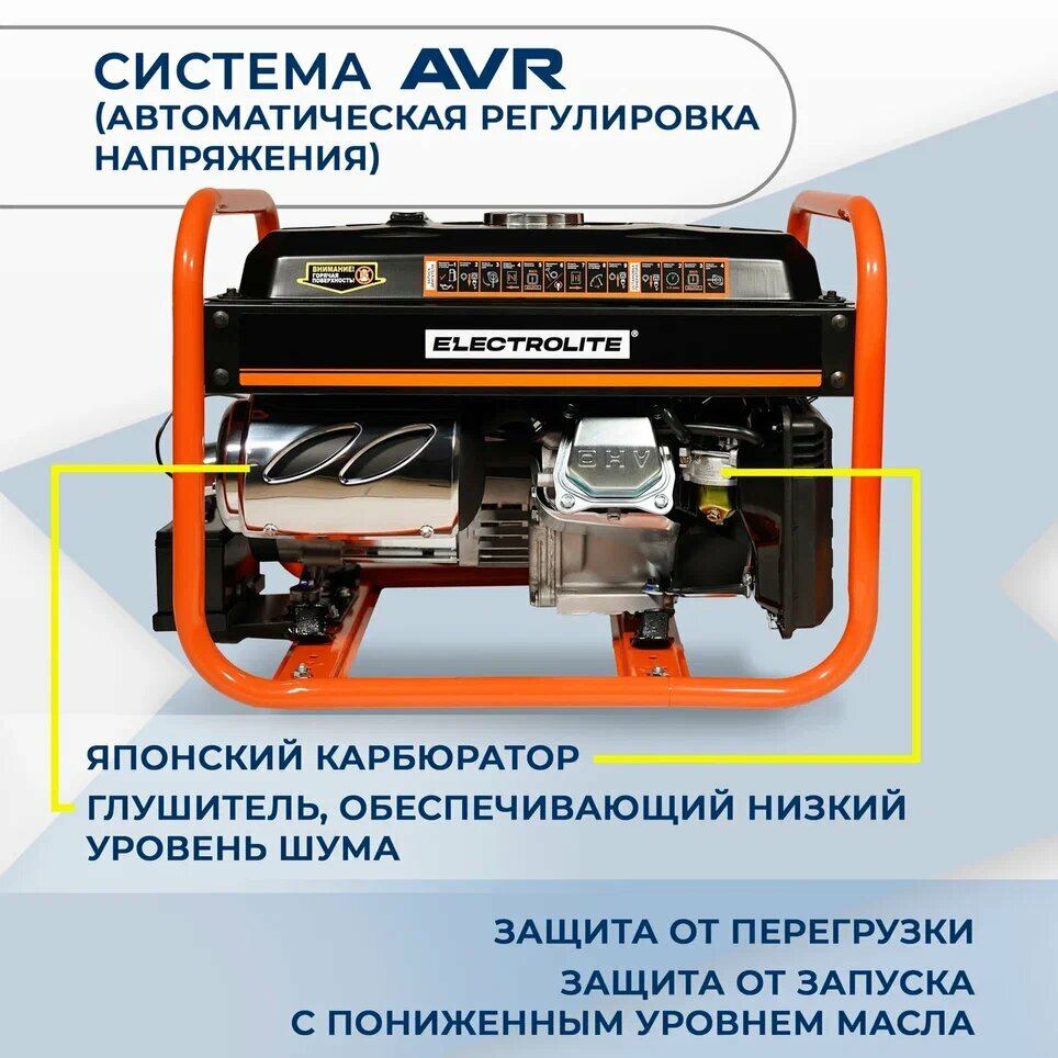 Купить Генератор Бензиновый / Электрогенератор ELECTROLITE 3500S ( электростартер 3,75 кВа - 4,4 кВа, 7.5 Л.С, 220/12 В, медь )