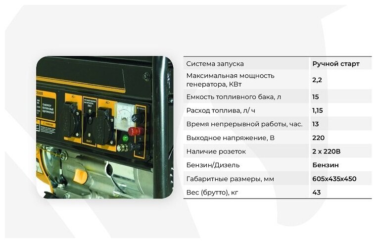 Генератор бензиновый однофазный Habert HT2500B 2,2кВт 220В бак 15л