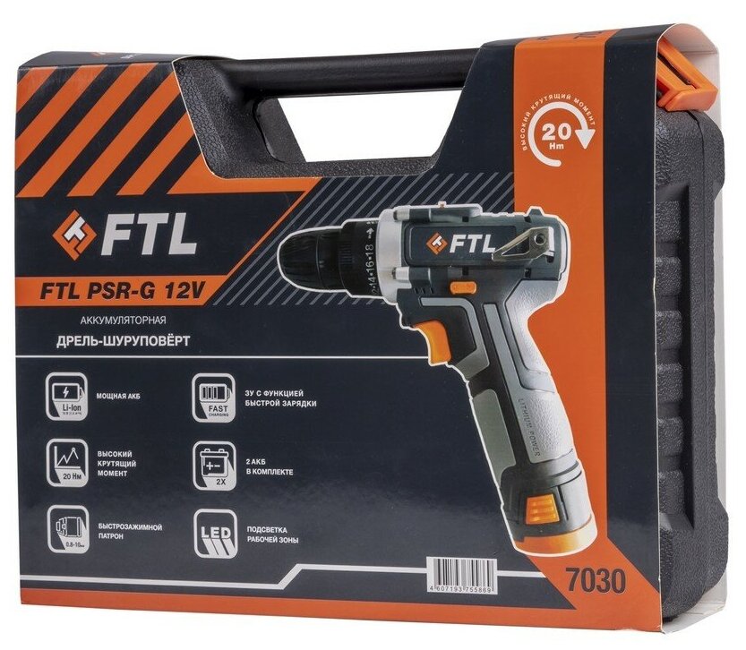 Аккумуляторная дрель-шуруповёрт FoxWeld FTL PSR-G 12V (12 В, 20 Нм, 1350 об/мин), (7030) интересное: