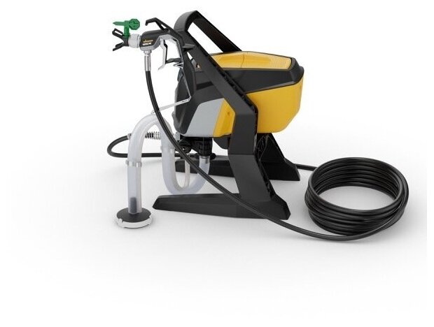 | Комплектация | Невероятно удобный и эргономичный пистолет с легким спуском, окрасочный рукав 9 м, реверсивные сопла HEA 311 и 515 для жидких и густых красок, комплект фильтров |