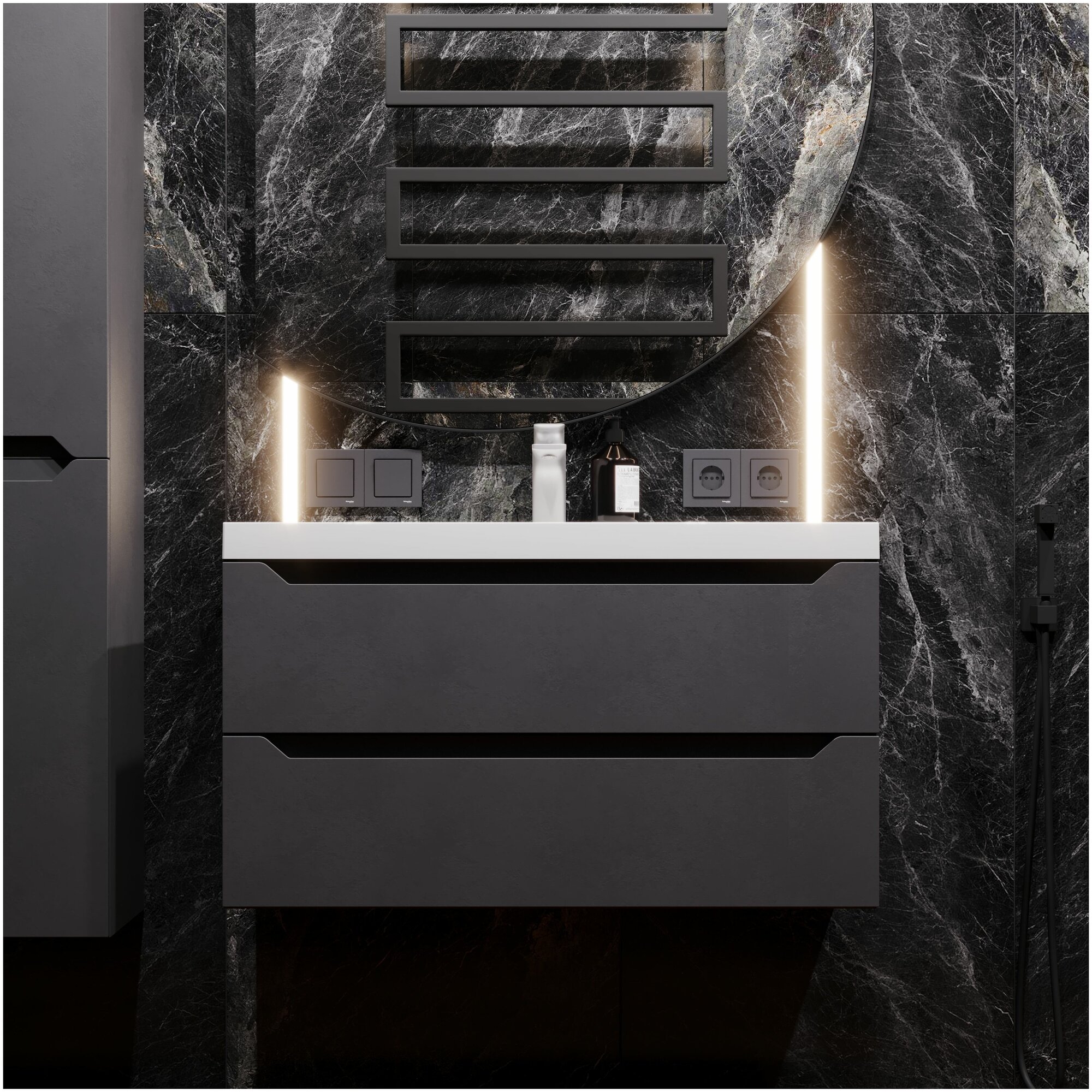 Тумба под раковину аквакрафт Violetta 90 для ванной комнаты, подвесная, графит.