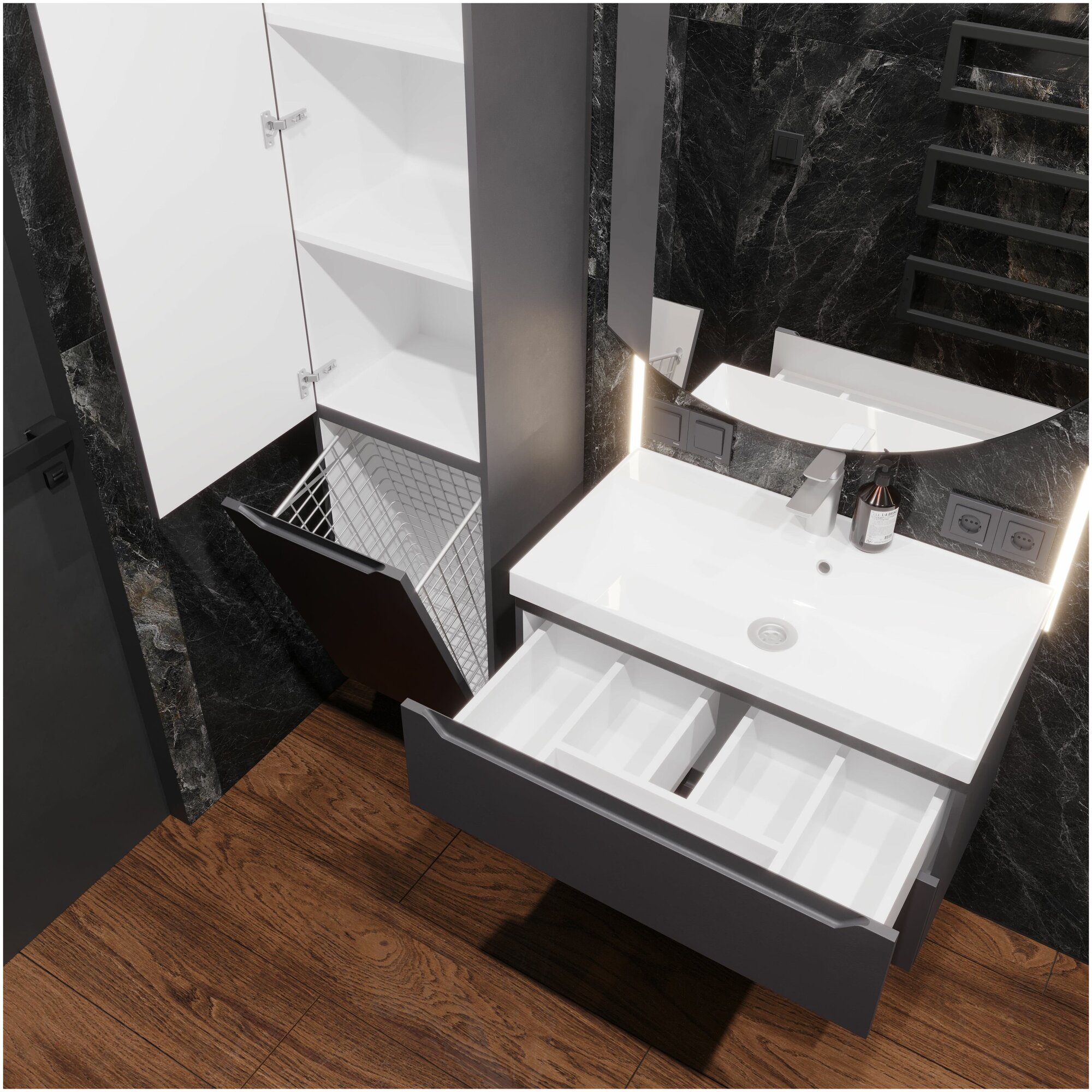 Тумба без раковины аквакрафт Violetta 90 для ванной комнаты, подвесная, графит. интересное: