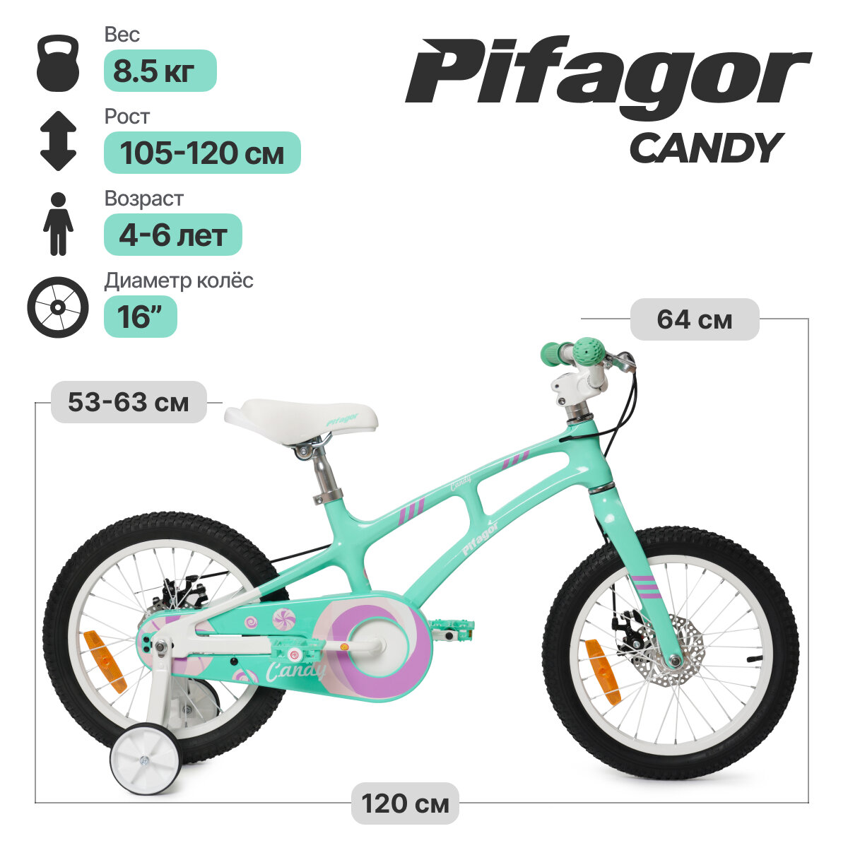 Велосипед Pifagor Candy 16 (Мятный; PG16CYMW) интересное: