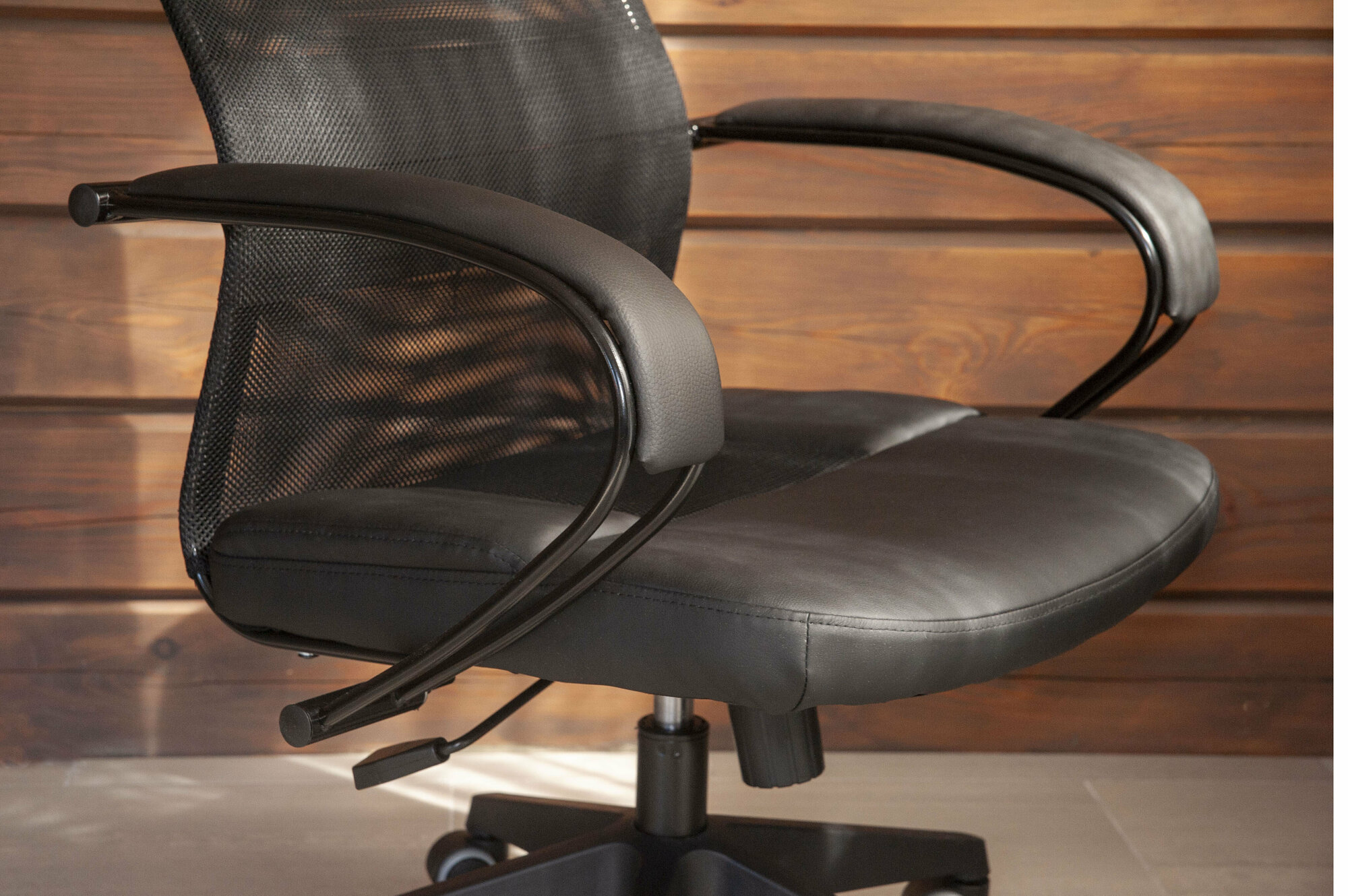Кресло компьютерное офисное стул для руководителя Chair 4 черное кожа сетка интересное: