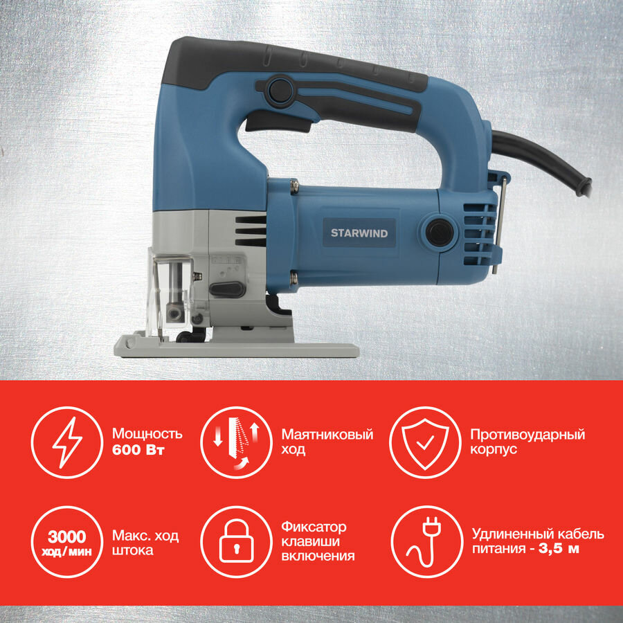 Лобзик Starwind JP-65-600 600Вт 3000ходов/мин от электросети интересное: