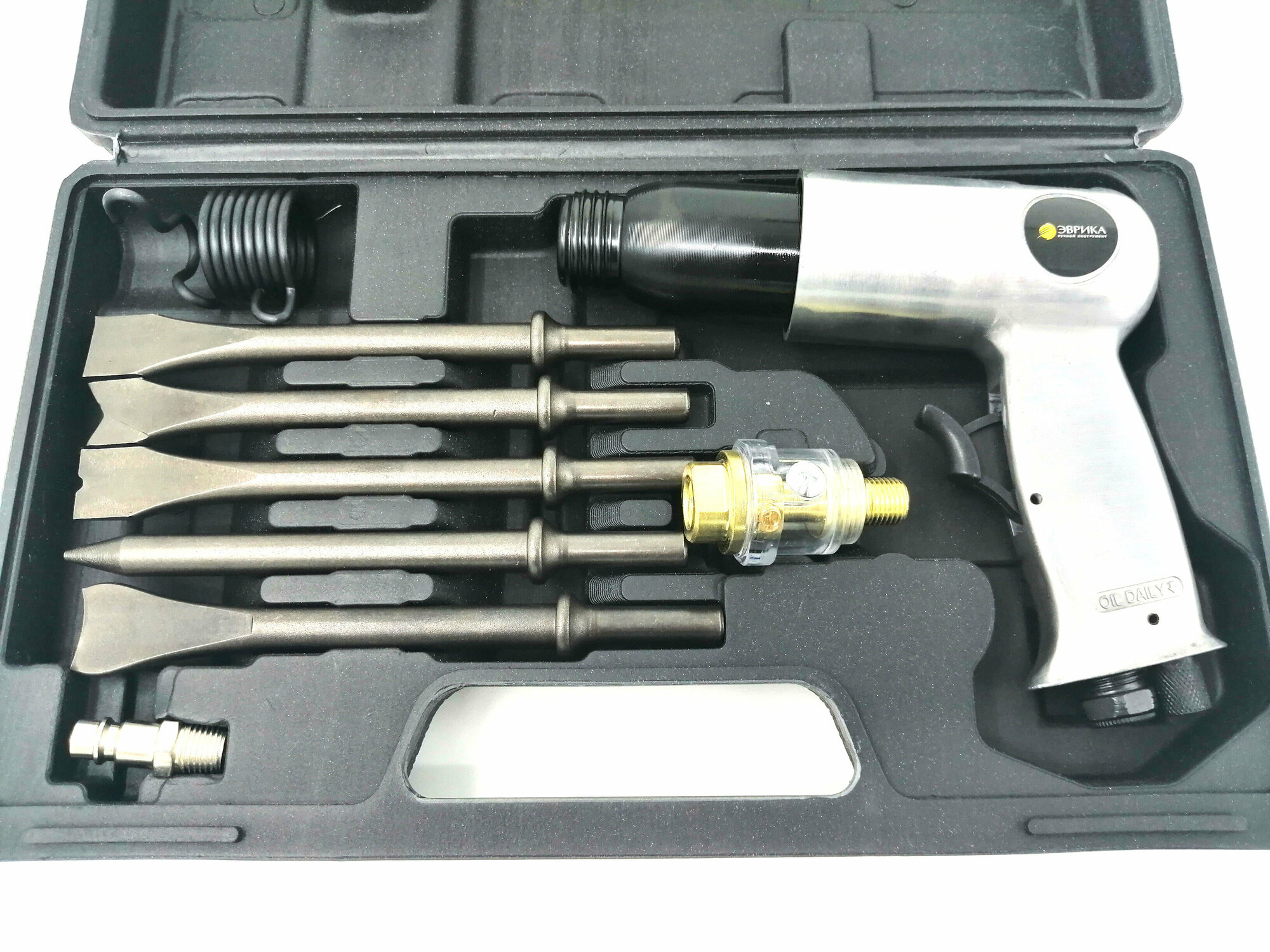 Пневмомолоток с набором зубил ER-83502K Эврика, пневматический молоток ударный