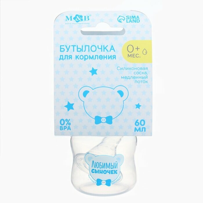 Бутылочки Mum&Baby Бутылочка для кормления 60 мл., «Любимый сыночек», цвет голубой