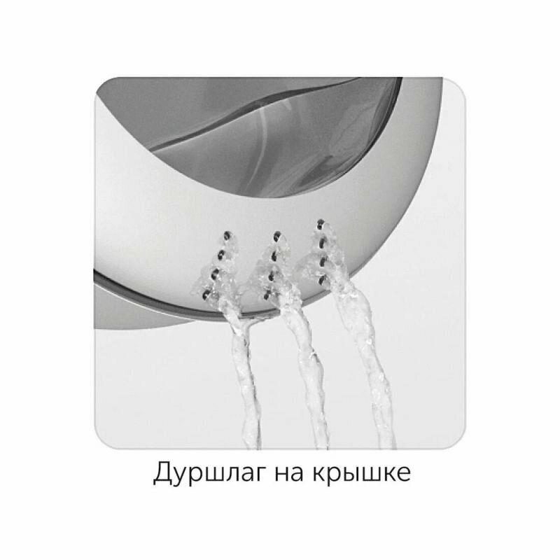 | Плюсы: | Есть на крышке отверстия для слива . Минимум места за счёт сгибающихся ручек . |