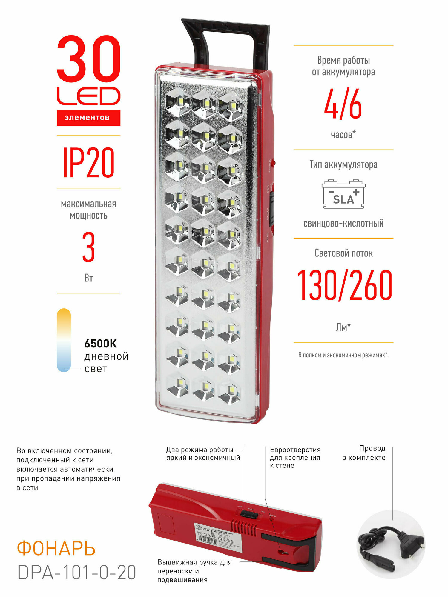 ЭРА Аварийный светильник светодиодныйDPA-101-0-20 непостоянный 30LED 6ч IP20 SLA, Б0044400