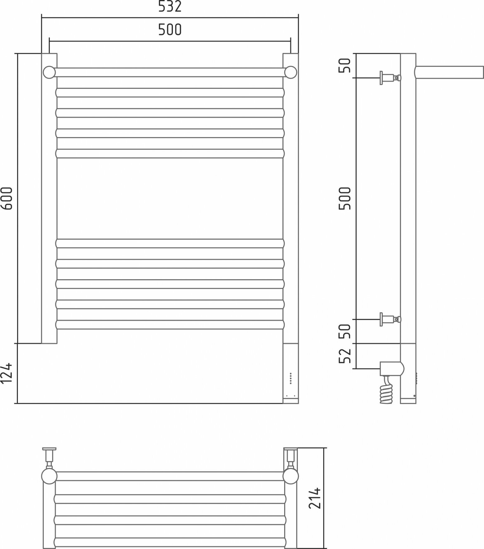 Полотенцесушитель Электрический Тругор Пэк сп 5 П 60х50 черный ВГП