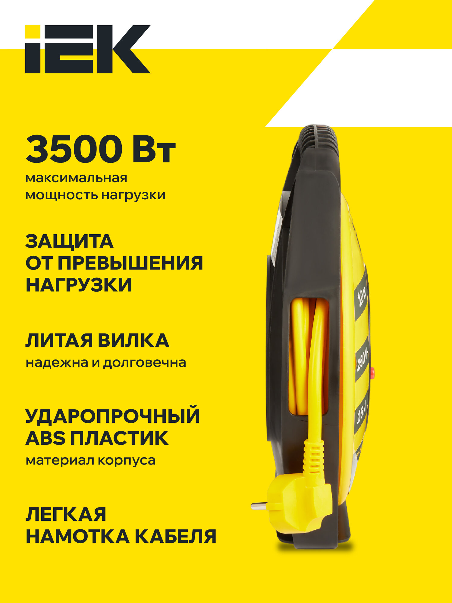 Удлинитель на катушке силовой IEK 4 розетки 10м WKP15-16-04-10 10А IP20 с/з