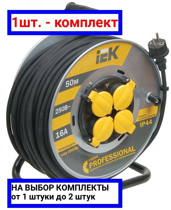 Удлинитель на мет. катушке 4х50м с заземл. 16А IP44 УК50 "Professional" с термозащ. КГ 3х1.5 IEK WKP16-16-04-50-44 (1 шт.)
