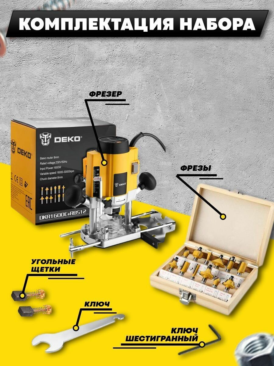 Фрезер DEKO DKR1600E, набор фрез RBS12 12 предметов 063-4221 интересное: